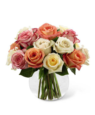 For your anniversary, we've put together a gentle mix of roses to create a beautiful arrangement of cream, white, orange, and pink roses. Made with love by a local florist, you can enjoy same-day delivery. This brightly colored bouquet is the perfect way to celebrate one of the best days of your life and the journey you've shared together. With this bouquet of mismatched flowers that complement each other perfectly, you can express all the love that makes your relationship a success.
